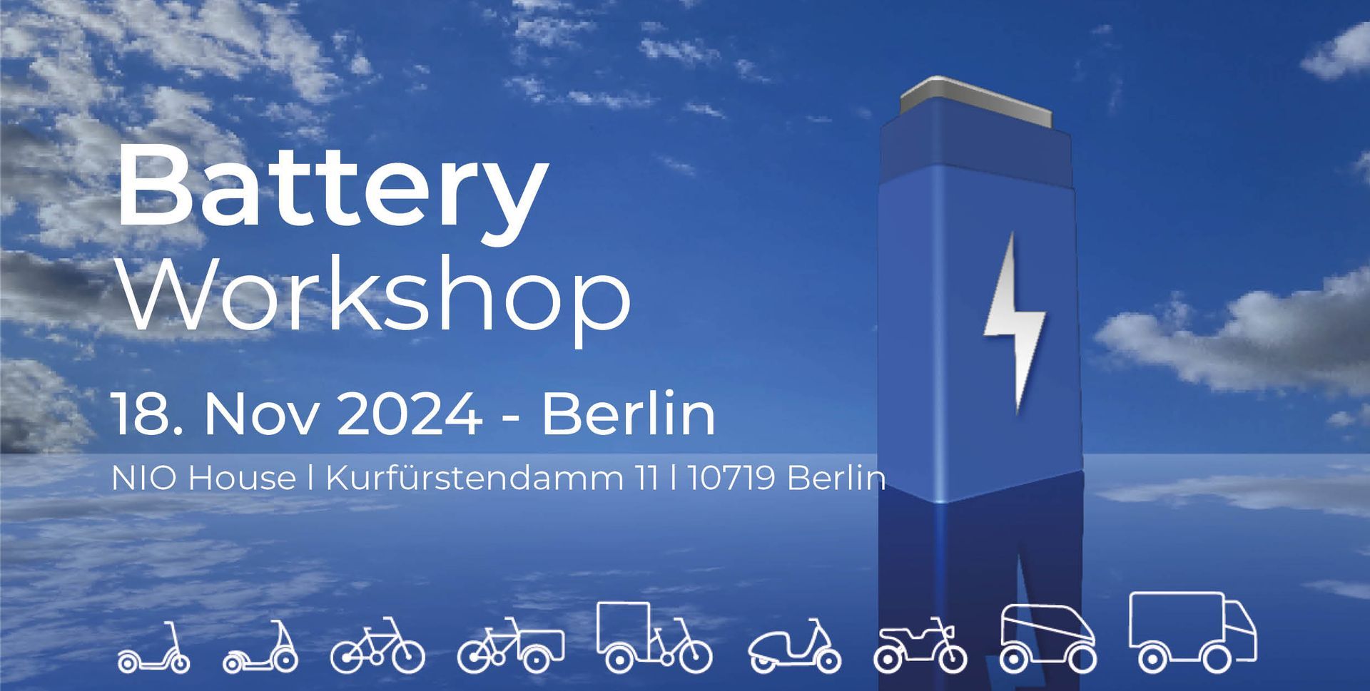 At the battery workshop in the NIO House, we will talk about the industry's requirements for a future standard for removable battery systems for LEVs with up to 2.5 kWh capacity and together we will define the most important key data.