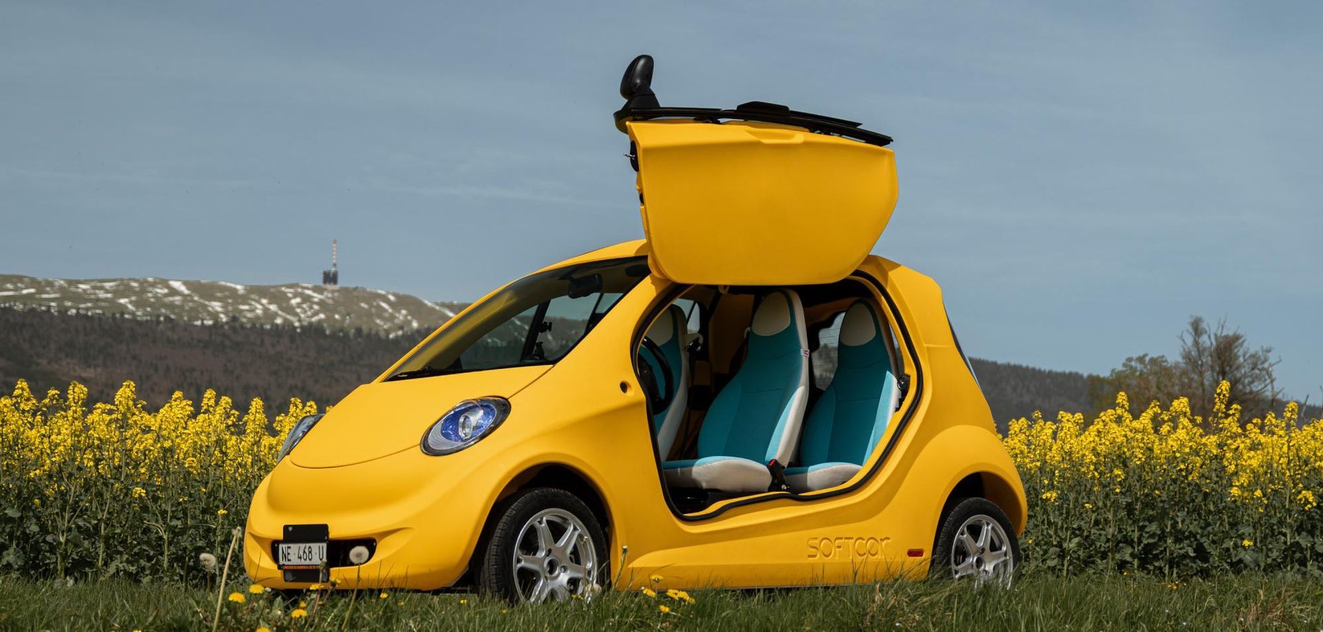 Die Schweizer Firma Softcar hat Mitte Oktober auf dem Pariser Autosalon dem europäischen Markt ein Elektroauto der Leichtbauklasse L7e mit vier Sitzen vorgestellt. Das Softcar setzt auf nachhaltige Materialien und eine vergleichsweise geringe Anzahl von Bauteilen. Die Karosserie besteht aus kohlenstoffarmen Verbundpolymeren, was nicht nur das Gewicht reduziert, sondern die Bauteile auch leichter austauschbar und recycelbar macht. Dank seiner modularen Bauweise werde auch Versionen als Zweisitzer, Cabriolet und Kleintransporter angeboten.